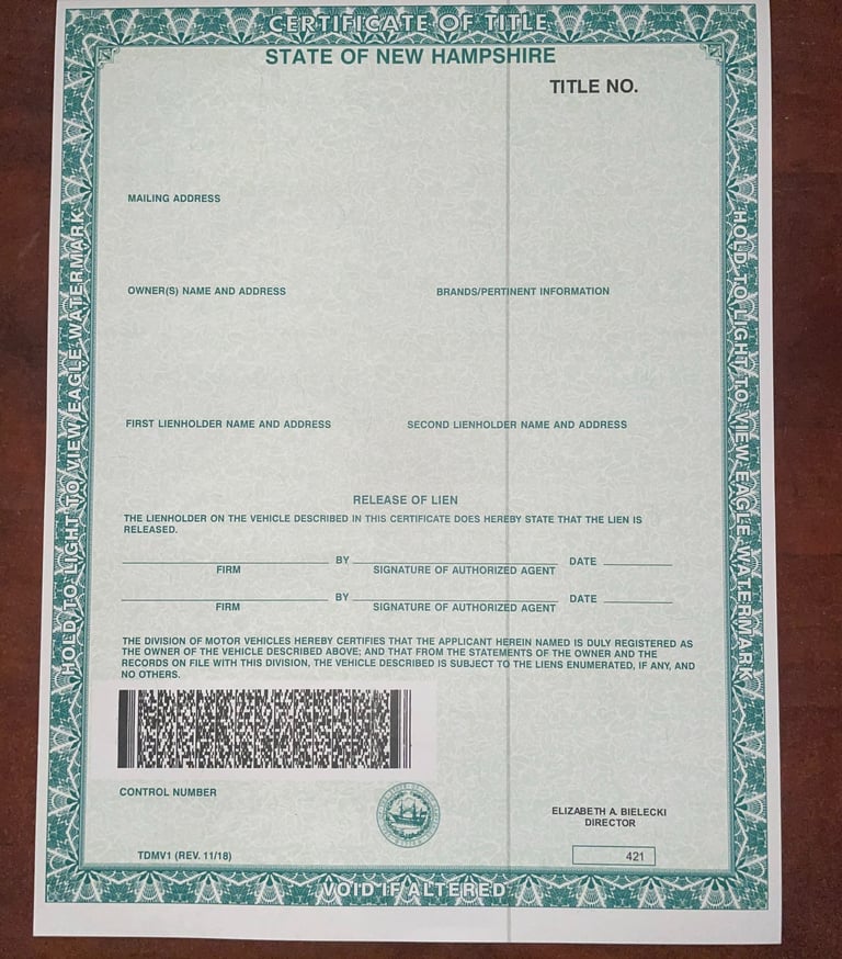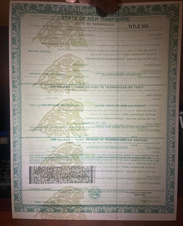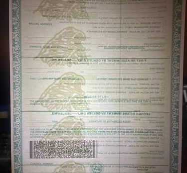 VEHICLE TITLE PAPER ALL SECURITY FEATURES UV WATERMARK SECURITY THREAD CORRECT PAPER